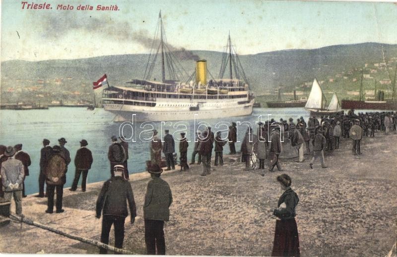 Molo della Sanita. Editore Milan Mandich No. 734. / Lloyddampfer Thalia / Lloyd Austriaco Austrian steamship SS Thalia in Trieste (Trst), port, ship station (EB)