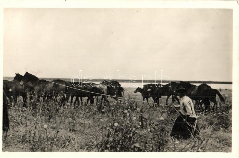 Hortobágy, pányvavető csikós https://www.darabanth.com/hu/339-Gyorsarveres/339.0/Kepeslapok/Magyarorszag~2000005/Hortobagy-panyvaveto-csikos~II1908182