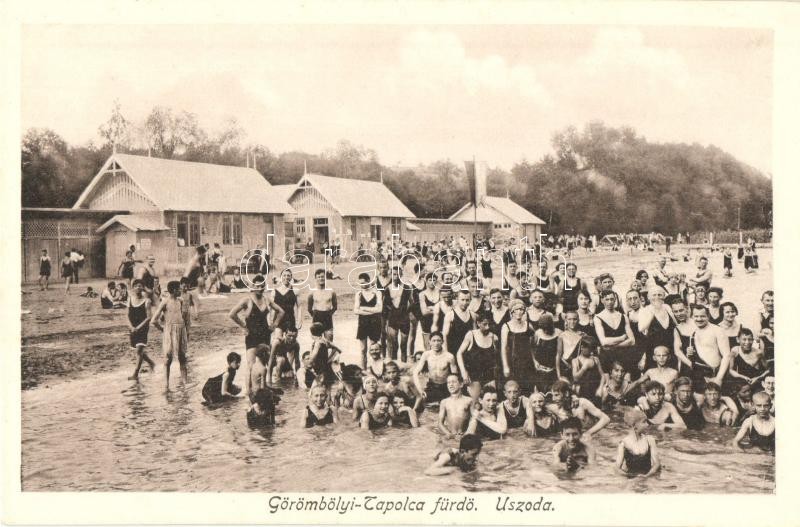 Leírás: Miskolctapolca, Görömbölytapolca, Görömbölyi-Tapolca, Tapolca (Miskolc); Uszoda, fürdőzők. Kiadja Grünwald Ignác