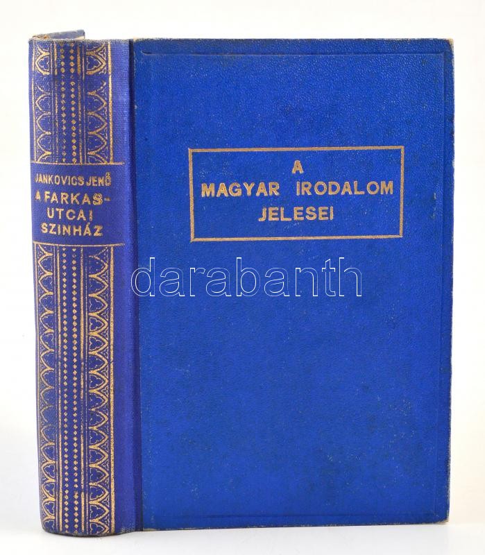 Janovics Jenő: A Farkas-utcai színház. Bp. 1941, Singer és Wolfner. Kiadó aranyozott egészvászon-kötés, kissé kopott borítóval, illusztrációk nélküli példány.