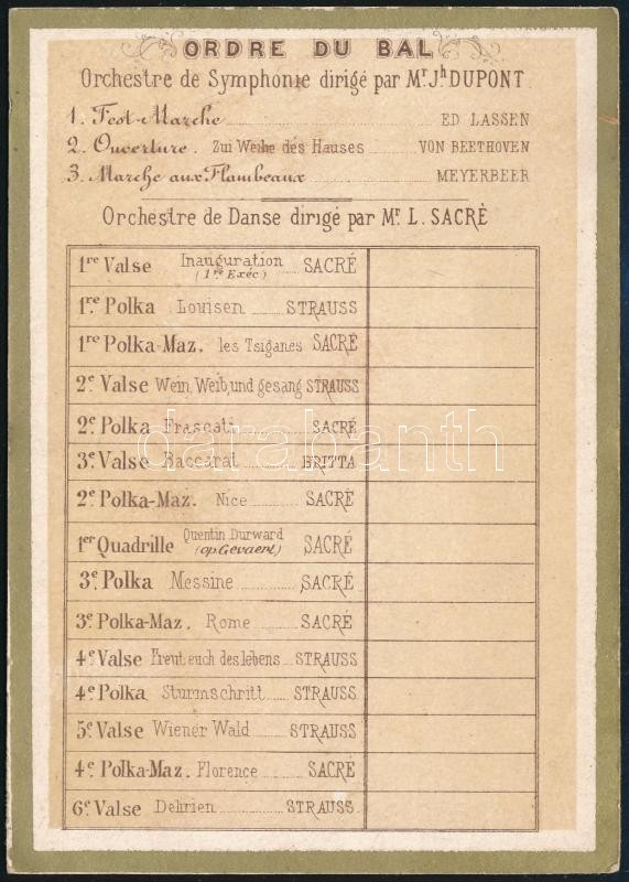 1873 A Brüsszeli tőzsde épületének felavatási bálja, Táncrend térképpel / 1873 Inauguration of the Stock exchange of Bruxelles. Dance card with plan. 4p.