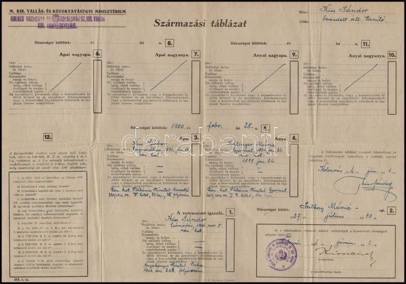 1944 Kolozsvári állami tanító származási igazolása https://www.darabanth.com/hu/339-Gyorsarveres/339.0/Mutargy-papirregiseg-egyeb/Okmanyok~2000089/1944-Kolozsvari-allami-tanito-szarmazasi-igazolasa~II1904992