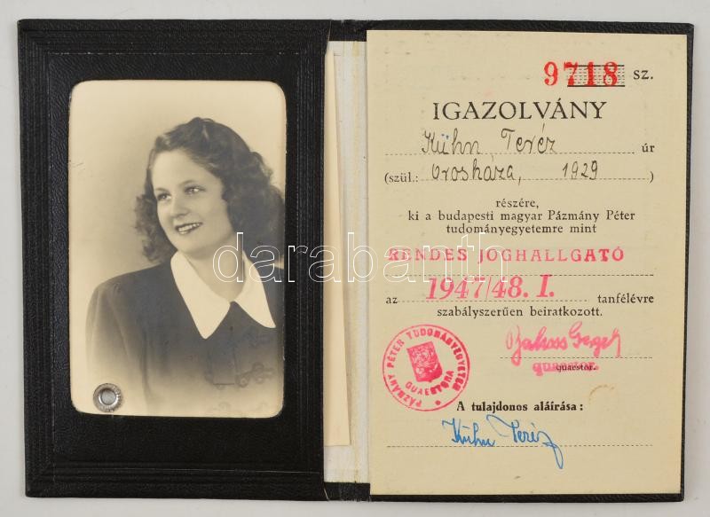 1947 Joghallgató fényképes diákigazolványa https://www.darabanth.com/hu/339-Gyorsarveres/339.0/Mutargy-papirregiseg-egyeb/Okmanyok~2000089/1947-Joghallgato-fenykepes-diakigazolvanya~II1905496