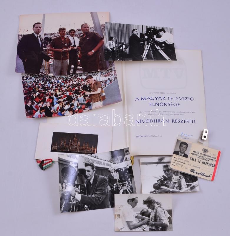 Leírás: cca 1960-1970 Török Vidor (1907-1981) operatőr portugál sajtóigazolványa, róla készült fotók, nívódíja