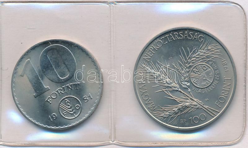 Leírás: 1981. 10Ft Ni + 100Ft Ni "FAO" eredeti tokban, tanúsítvánnyal T:BU