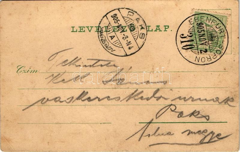 Leírás: 1905 Nagymarton, Mattersdorf, Mattersburg; Fő tér, vasúti híd, gőzmozdony / Hauptplatz, Eisenbahnbrücke / main square, railway bridge, locomotive. Art Nouveau, floral, litho (EK)