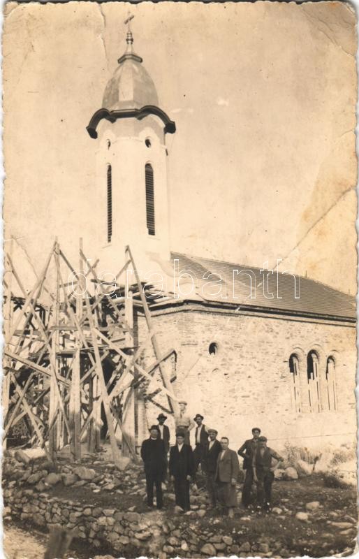 1939 Felsőbarbatyén, Barbatyén, Barbateni (Lupény, Lupeni); Biserica Pogorarea Sfantului Duh / Görögkeleti templom építés közben, pap / Orthodox church in construction, priest. photo (fa)