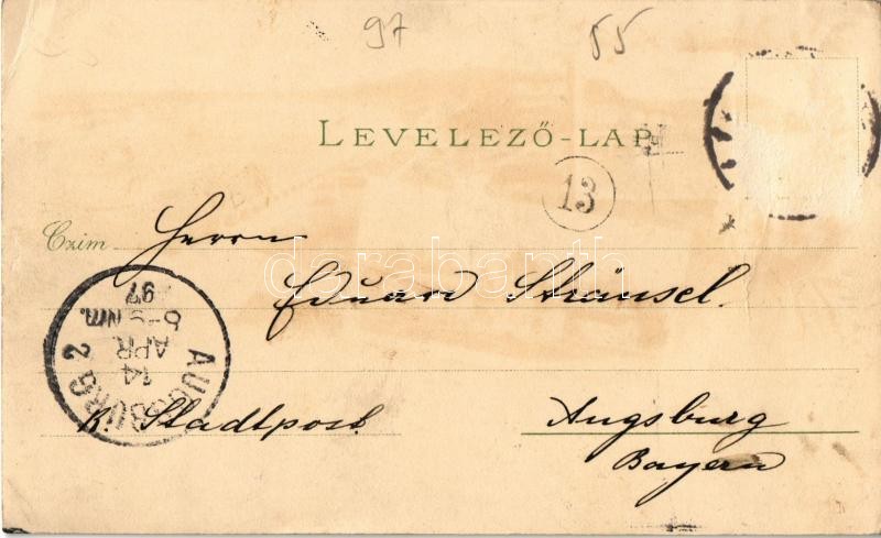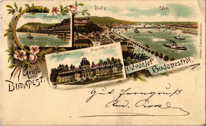 Leírás: 1897 (Vorläufer!!!) Budapest, Gellérthegy, Buda, Tabán, Margit fürdő. Ottmar Zieher. Art Nouveau, floral, litho (Rb)