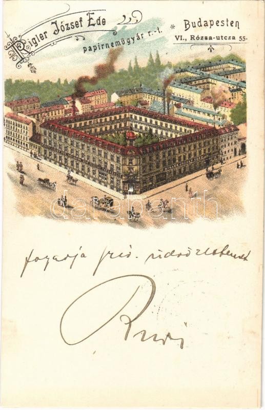 1899 (Vorläufer) Budapest VI. Rigler József Ede papírneműgyár rt. Rózs... https://www.darabanth.com/hu/34-Nagyaukcio/34.1/Kepeslapok/Magyarorszag~14307/1899-Vorlaufer-Budapest-VI-Rigler-Jozsef-Ede-papirnemugyar-rt-Rozsa-utca-55-litho~II2246041