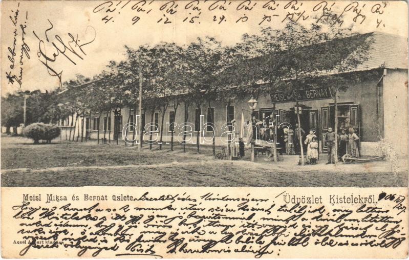1906 Kistelek, Meisl Miksa és Bernát üzlete. Aczél Albert kiadása https://www.darabanth.com/hu/34-Nagyaukcio/34.1/Kepeslapok/Magyarorszag~14307/1906-Kistelek-Meisl-Miksa-es-Bernat-uzlete-Aczel-Albert-kiadasa~II2237115