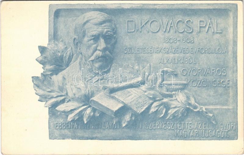 1910 Győr, Dr. Kovács Pál születésének százéves évfordulója alkalmából készült emléktábla. Ő alapította az első győri olvasóegyesületet és szerkesztette az első magyar nyelvű győri lapot