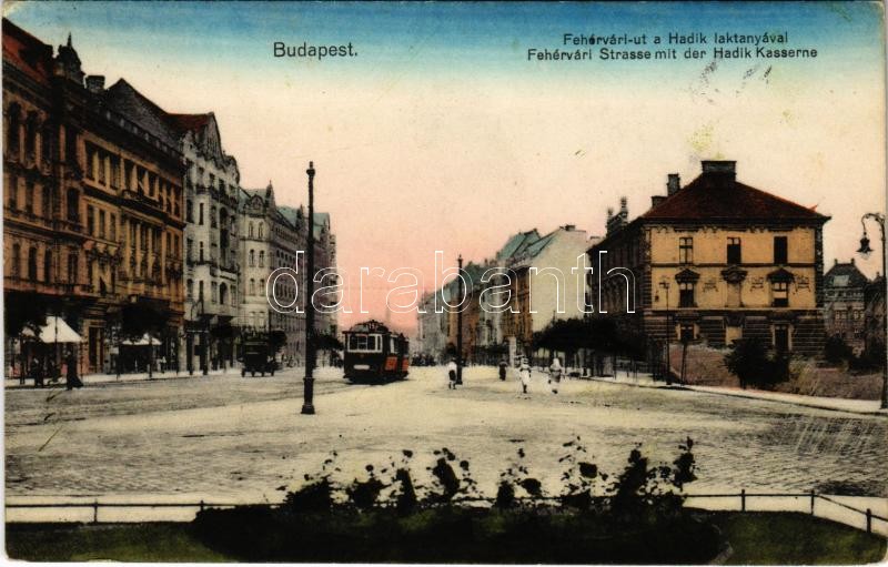 1917 Budapest XI. Fehérvári út, Hadik laktanya, 19-es villamos (EK) https://www.darabanth.com/hu/34-Nagyaukcio/34.1/Kepeslapok/Magyarorszag~14307/1917-Budapest-XI-Fehervari-ut-Hadik-laktanya-19-es-villamos-EK~II2244145