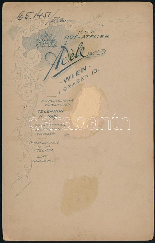 Leírás: 1895 Pálmay Ilka (1859-1945) Kinsky Jenő grófné, színésznő, énekesnő saját kézzel aláírt keményhátú fotója, Adéle bécsi műterméből, 17×11 cm