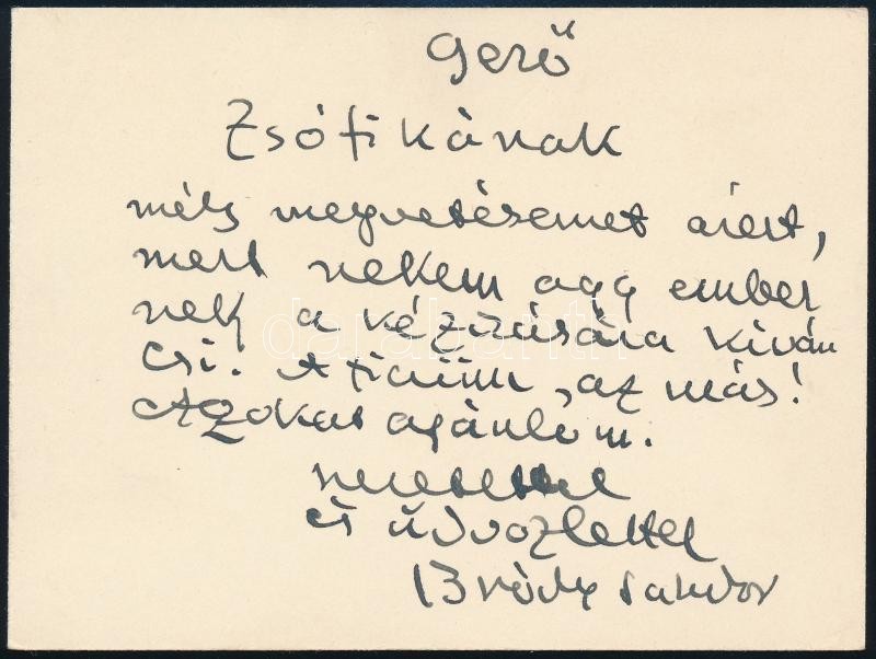 Bródy Sándor (1863-1924) író, újságíró autográf sorai kártyáján. Gerő ... https://www.darabanth.com/hu/34-Nagyaukcio/34.1/Mutargy-papirregiseg-egyeb/Alairas~14658/Brody-Sandor-1863-1924-iro-ujsagiro-autograf-sorai-kartyajan-Gero-Zsofianak-1895~II2172495