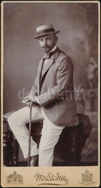 1900 Budapest, Strelisky Lipót (1807-1905) császári és királyi udvari fényképész műtermében készült, keményhátú, vintage fotó, amely a 63593-as nyilvántartási számot viseli, 20,7x11 cm