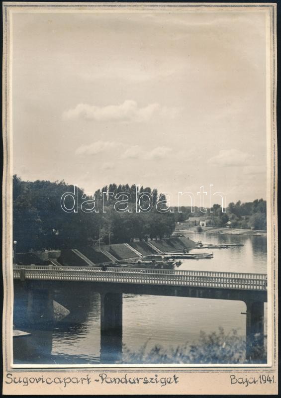 Leírás: 1941 A bajai Sugovicapart-Pandursziget részletének fotója, fotó kartonon, feliratozva, 23x17 cm