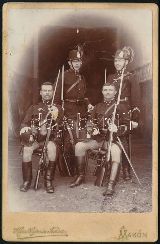 cca 1896 Csendőrök teljes felszerelésben, keményhátú fotó Huszthyné ma... https://www.darabanth.com/hu/34-Nagyaukcio/34.1/Mutargy-papirregiseg-egyeb/Militaria~14652/cca-1896-Csendorok-teljes-felszerelesben-kemenyhatu-foto-Huszthyne-makoi-mutermebol-jC3~II2238320