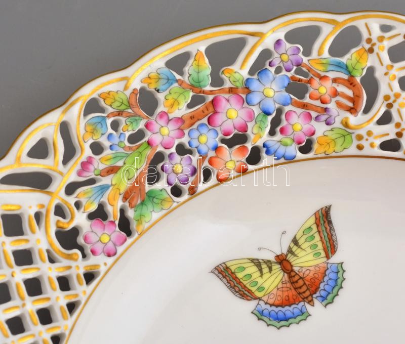 Leírás: Herendi Viktória mintás áttört porcelán tál, kézzel festett, jelzett, hibátlan, d: 24 cm