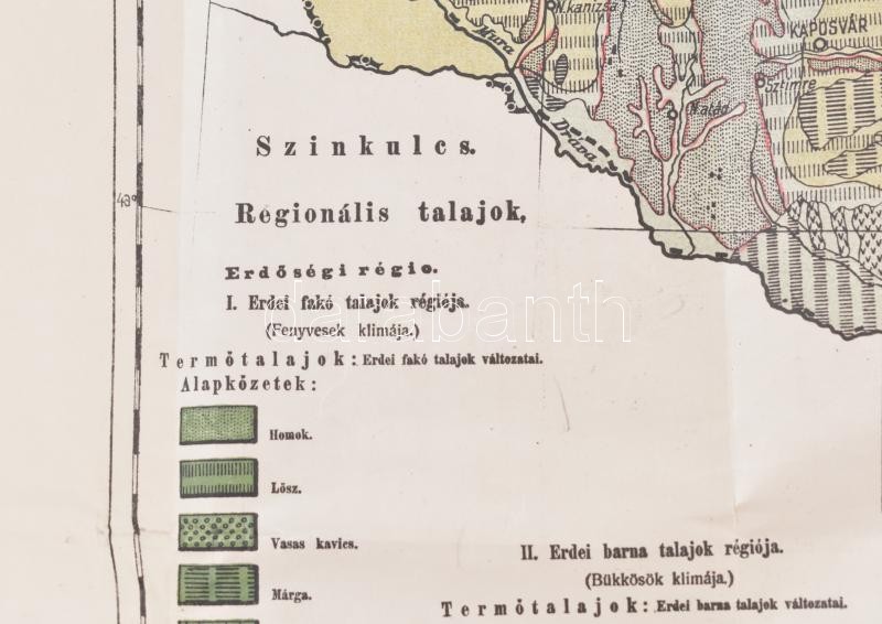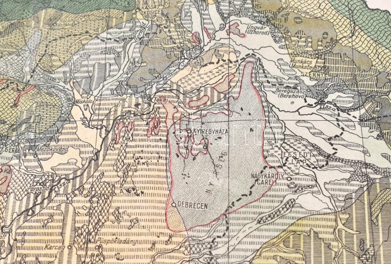 1927 Magyarország Talaj-régióinak átnézetes térképe, Szerk.: 1918-ban Treitz Péter, 1:1.000.000, Bp., M. Kir. Földtani Intézet, hajtott, szakadt, 69x92 cm