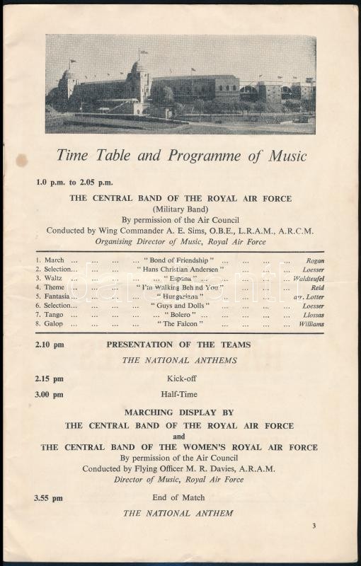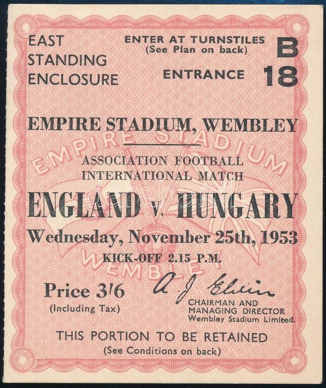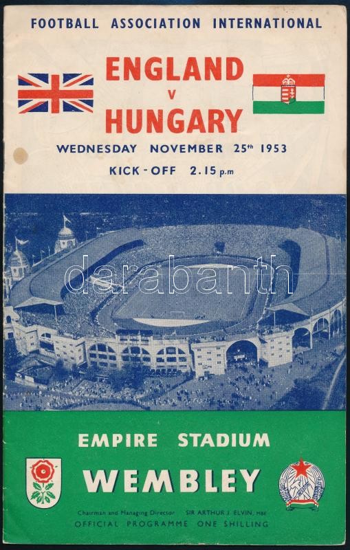 1953 Magyarország-Anglia, a legendás 6:3-as labdarúgó mérkőzés meccsfüzete, és egy belépőjegy a Wembley Stadionba, ahol az Aranycsapat legyőzte az évtizedek óta veretlen Angliát. /