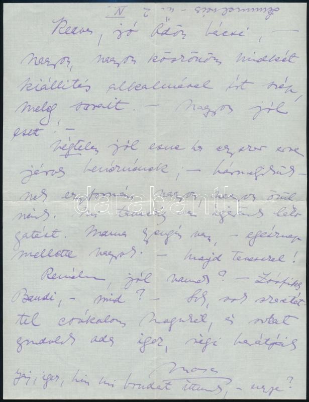 Feszty Masa (1895-1979) festőművész autográf, személyes hangú levele Gerő Ödön esztétának, melyben megköszöni a kiállításáról írt pozitív recenziót. Egy beírt oldal