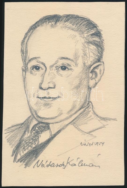 1954 Zádor István (1882-1963): Nádasdy Kálmán háromszoros Kossuth-dÃjas filmrendezÅ‘, szÃnházigazgató portréja. Ceruza, papÃr, jelzett, 18x12 cm. Nádasdy Kálmán saját kezű aláÃrásával.