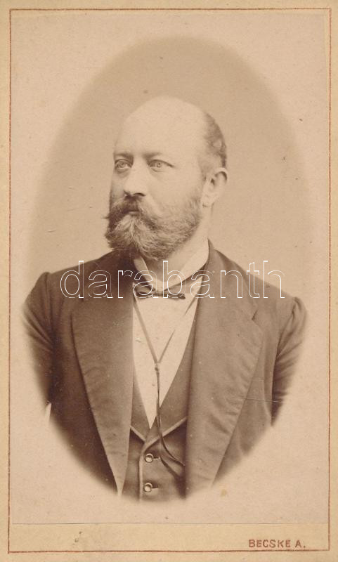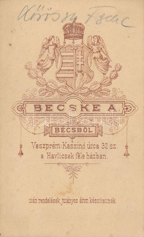 Leírás: cca 1870 Körössy Ferenc (Veszprém megye esküdtje) feliratú vizitkártya méretű portré Becske veszprémi műterméből, 10,5x6,5 cm