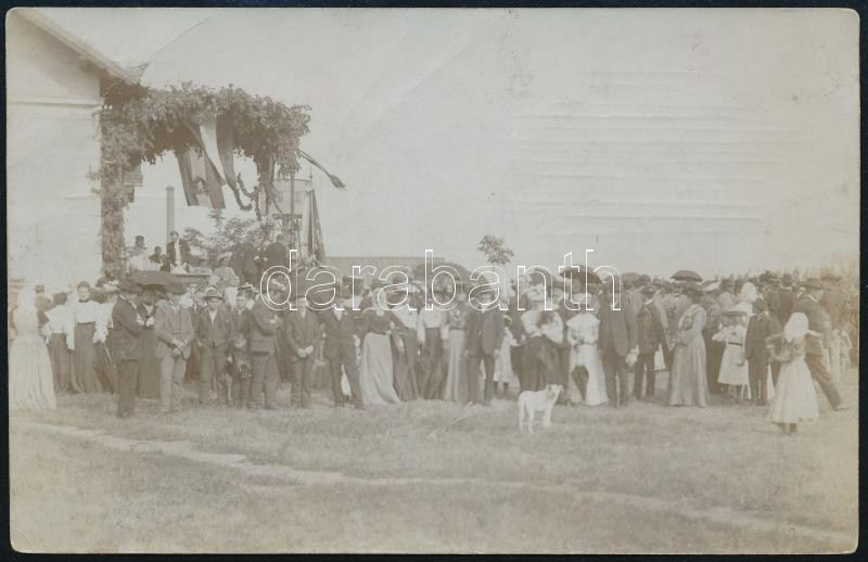 cca 1910 Ünnepi tömeg kutyával, fotólap, 9×14 cm https://www.darabanth.com/hu/340-Gyorsarveres/340.0/Fotomuveszet/Foto~500020/cca-1910-Unnepi-tomeg-kutyaval-fotolap-9C39714-cm~II1913188