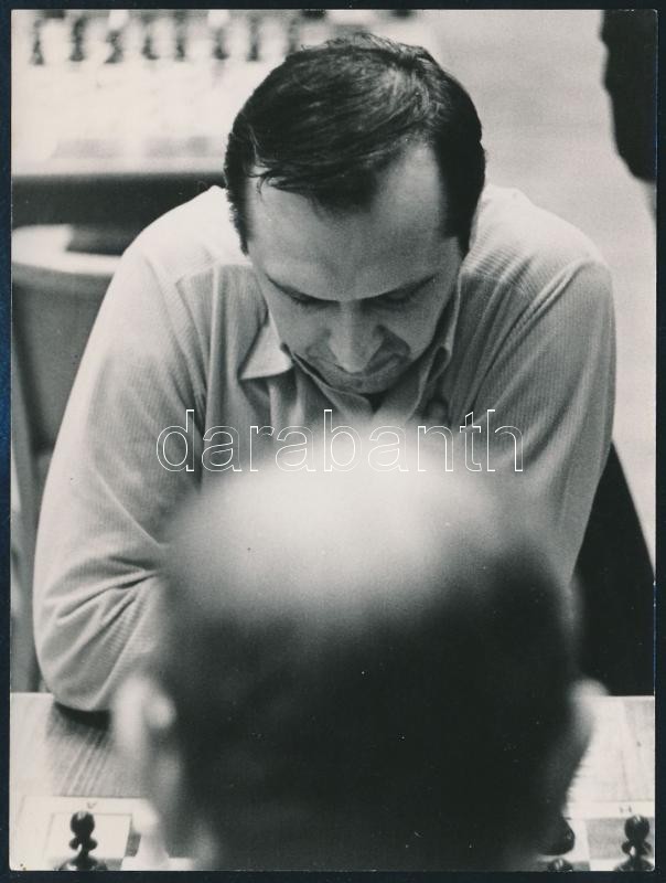 cca 1975 Lengyel Levente (1933-2014) sakkozó, Maróczy-díjas nemzetközi sakknagymester, sakkolimpiai ezüst és bronzérmes, Európa-bajnoki és magyar bajnoki ezüstérmes, mesteredző fotója, 12x9 cm
