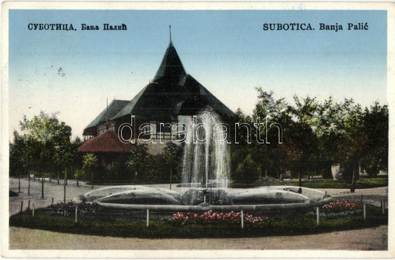 Palics, Palic (Szabadka, Subotica); fürdő, szökőkút / Banja Palic / sp... https://www.darabanth.com/hu/340-Gyorsarveres/340.0/Kepeslapok/Vajdasag~1000010/Palics-Palic-Szabadka-Subotica-furdo-szokokut-Banja-Palic-spa-bathing-hall-fountain~II1909208