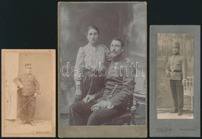 cca 1900-1914 Katonaportrék, 3 db keményhátú fotó, 10,5×6,5 és 16,5×10... https://www.darabanth.com/hu/340-Gyorsarveres/340.0/Mutargy-papirregiseg-egyeb/Militaria~500027/cca-1900-1914-Katonaportrek-3-db-kemenyhatu-foto-10-5C3976-5-es-16-5C39710-5-cm-kozotti-meret~II1913301