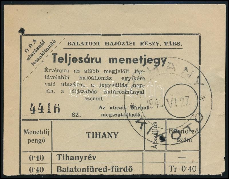 1940? a Balatoni Hajózási Rt. teljesárú menetjegye https://www.darabanth.com/hu/340-Gyorsarveres/340.0/Mutargy-papirregiseg-egyeb/Okmanyok~500017/1940-a-Balatoni-Hajozasi-Rt-teljesaru-menetjegye~II1914264