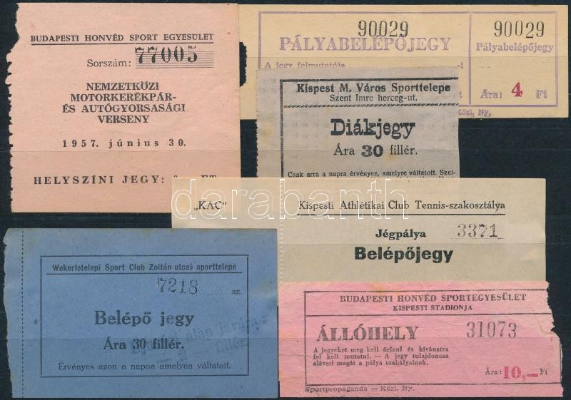 Leírás: 6 db különféle belépőjegy kispesti sportpályákra