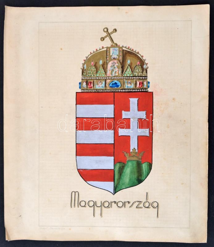 cca 1930 Magyarország címere. Akvarell, papír. Albumlapon. Lapméret 25... https://www.darabanth.com/hu/340-Gyorsarveres/340.0/Mutargy-papirregiseg-egyeb/Tortenelmi-dokumentumok-keziratok-erdekessegek~500018/cca-1930-Magyarorszag-cimere-Akvarell-papir-Albumlapon-Lapmeret-25x28-cm~II1914967