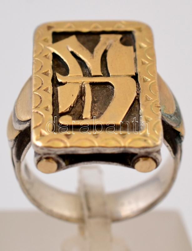 Leírás: Aranyozott ezüst(Ag) pecsétgyűrű, jelzett, méret: 58, nettó: 12 g