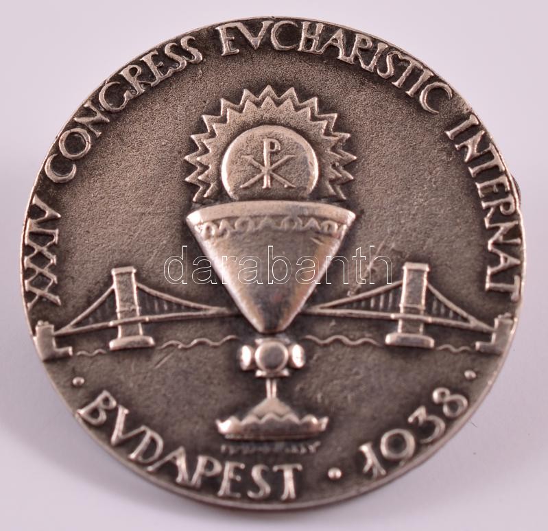 Leírás: Ezüst (Ag.) emlék kitűző (1938 XXXV. Eucharistic Congress), nettó: 4,3 g