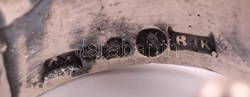 Ezüst(Ag) gyűrű, jelzett, méret: 52, nettó: 6,3 g https://www.darabanth.com/hu/340-Gyorsarveres/340.0/Nemesfem-Disztargyak-Orak-es-Ekszerek/Nemesfem-Disztargyak-Orak-es-Ekszerek~1500020/EzustAg-gyuru-jelzett-meret-52-netto-6-3-g~II1911216