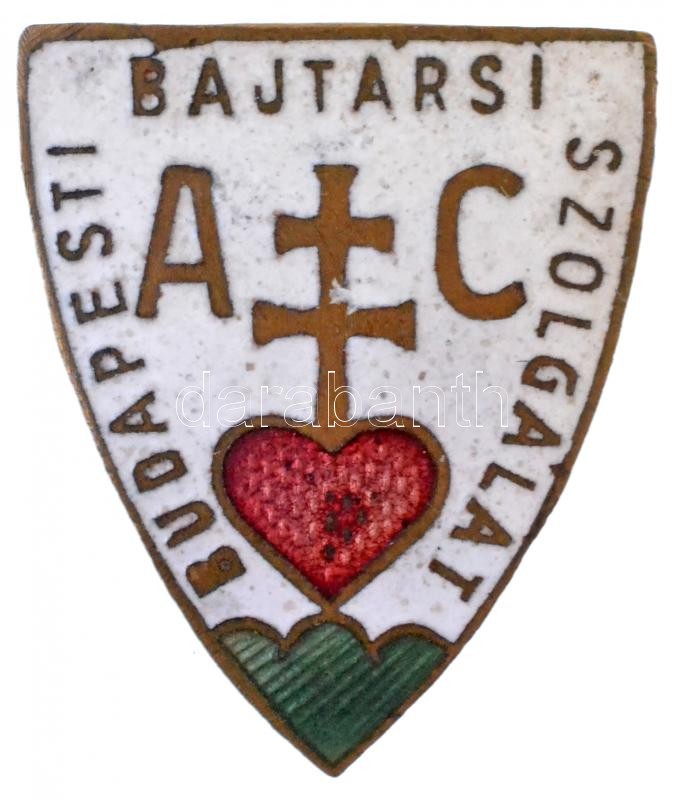 ~1930. "Budapesti Bajtársi Szolgálat" zománcozott jelvény (18x22mm) T:... https://www.darabanth.com/hu/340-Gyorsarveres/340.0/Numizmatika/Falerisztika-Kituntetesek-jelvenyek~2000017/7E1930-Budapesti-Bajtarsi-Szolgalat-zomancozott-jelveny-18x22mm-T2~II1909404