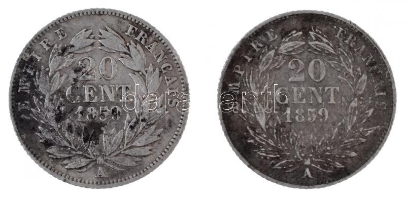 Franciaország / Második Császárság 1859A 20c Ag "III. Napóleon" (2x) T:2,2- patina