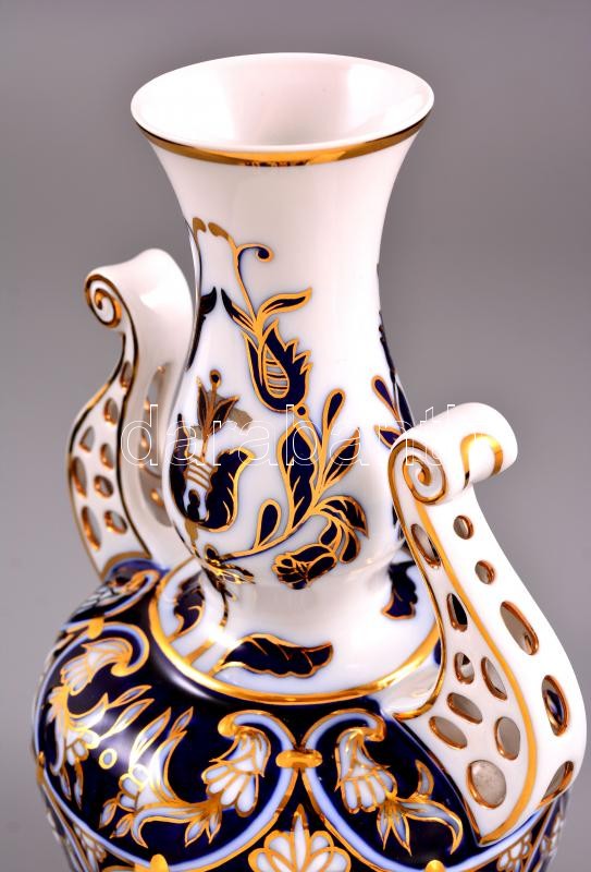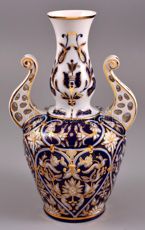Leírás: Hollóházi díszváza, kézzel festett, jelzett, hibátlan, m: 26 cm
