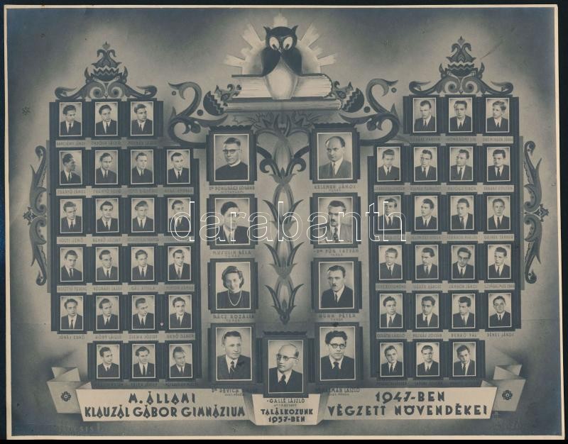 1947 Budapest, Klauzál Gábor Gimnázium tanárai és végzett hallgatói, k... https://www.darabanth.com/hu/341-Gyorsarveres/341.0/Fotomuveszet/Foto~500020/1947-Budapest-Klauzal-Gabor-Gimnazium-tanarai-es-vegzett-hallgatoi-kistablo-nevesitett-po~II1918008
