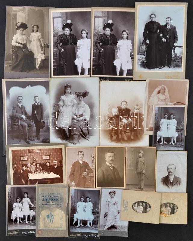 Leírás: 20 db keményhátú fotó kabinet és vizitkártya