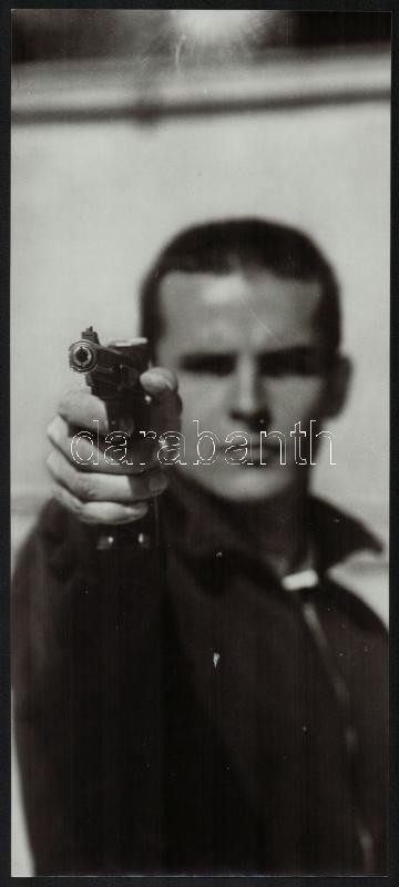Leírás: cca 1970 Balczó András (1938-) olimpiai bajnok öttusázó lövészet közben, jelzetlen fotó, 34×15 cm
