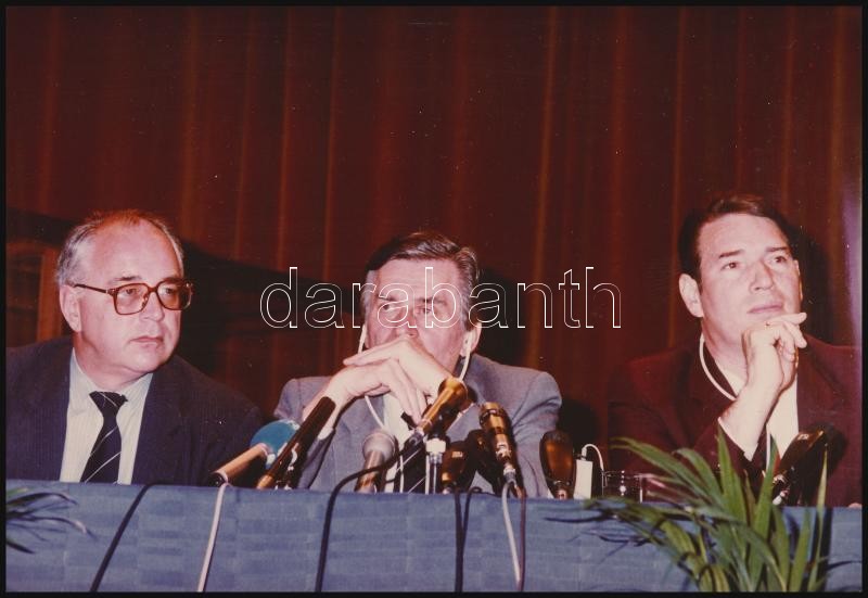cca 1992 Antall József miniszterelnök és O'sváth György konzervatív politikus, a miniszterelnök személyes tanácsadója nemzetközi találkozón. Eredeti, meg nem jelent fotó 18x13 cm