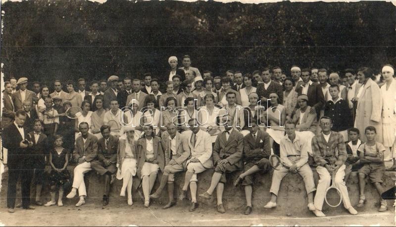 Leírás: Ungvár, Uzshorod, Uzhorod; teniszezők csoportképe, teniszütők / tennis players, tennis rackets, sport. Kántor photo (vágott / cut)