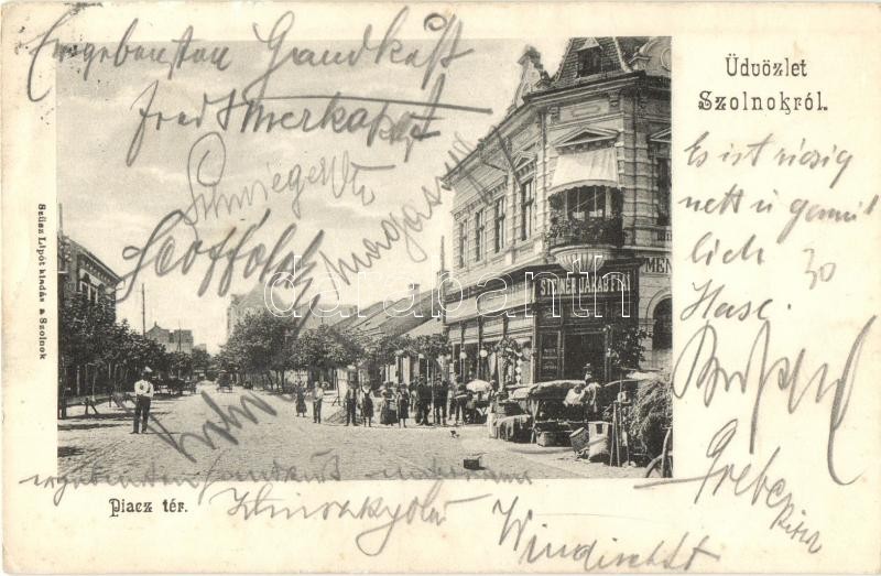 1905 Szolnok, Piac tér, Steiner Jakab fiai üzlete, piaci árusok. Kiadj... https://www.darabanth.com/hu/341-Gyorsarveres/341.0/Kepeslapok/Magyarorszag~1500005/1905-Szolnok-Piac-ter-Steiner-Jakab-fiai-uzlete-piaci-arusok-Kiadja-Szusz-Lipot-EK~II1920062