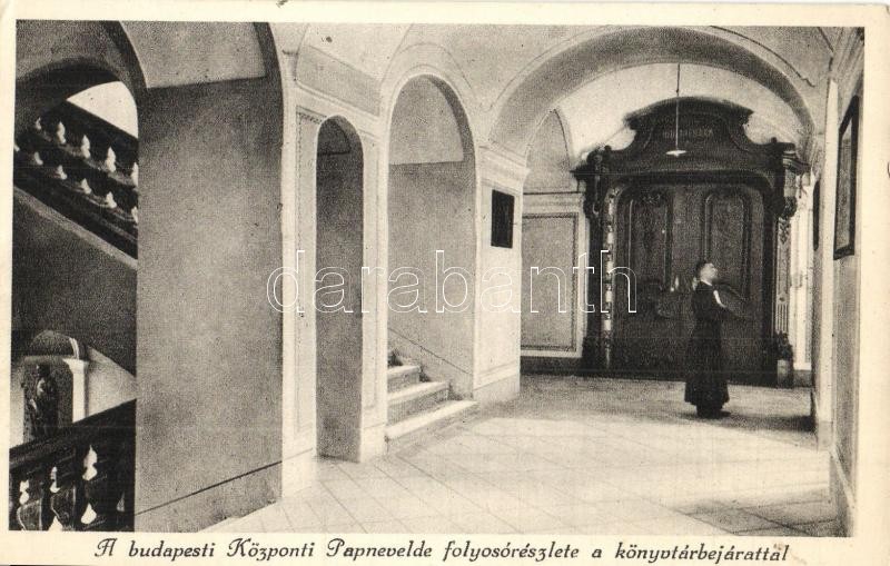 Budapest V. Központi Papnevelde folyosója a könyvtár bejáratával (EK) https://www.darabanth.com/hu/341-Gyorsarveres/341.0/Kepeslapok/Magyarorszag~1500005/Budapest-V-Kozponti-Papnevelde-folyosoja-a-konyvtar-bejarataval-EK~II1924005