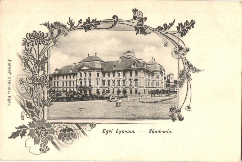 Eger, Egri Lyceum Akadémia. Baross nyomda, Art Nouveau, floral https://www.darabanth.com/hu/341-Gyorsarveres/341.0/Kepeslapok/Magyarorszag~1500005/Eger-Egri-Lyceum-Akademia-Baross-nyomda-Art-Nouveau-floral~II1917294