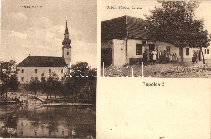 Leírás: Tapolcafő (Pápa), Forrás részlet, Református templom, Orbán Sándor üzlete és saját kiadása