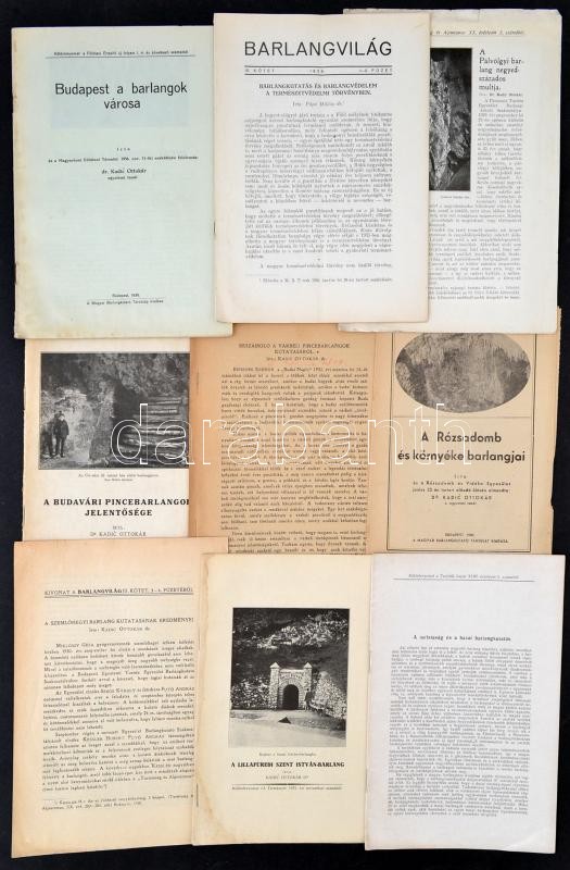 Leírás: cca 1930 Barlangászati témájú különlenyomatok, cikkek gyűjteménye, nagyrészt Kadič Ottokár munkái, néhány közülük dedikált